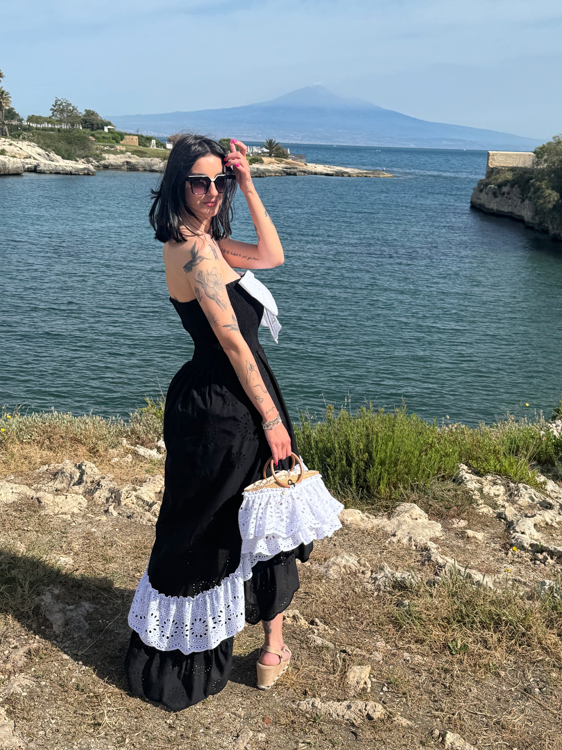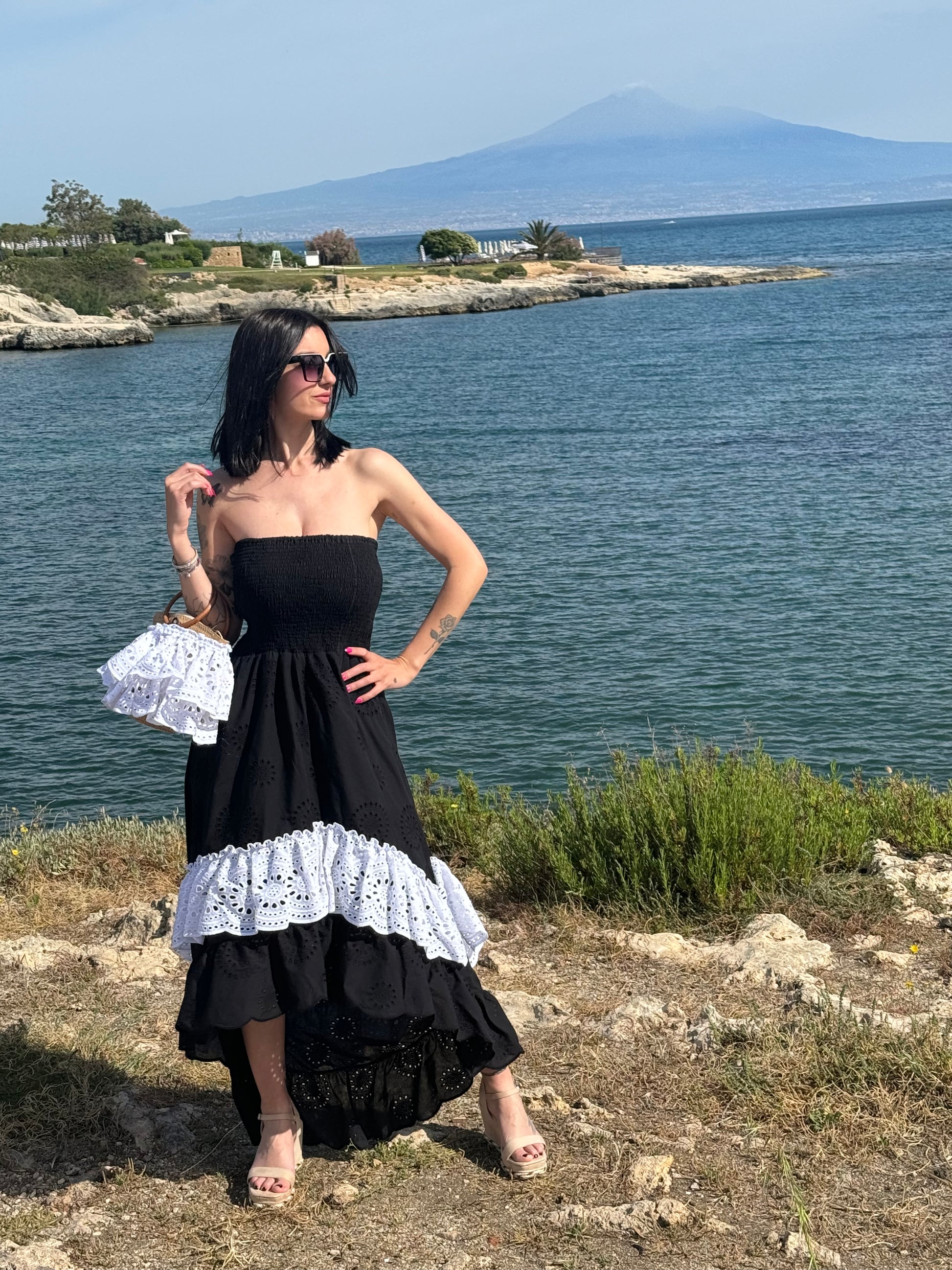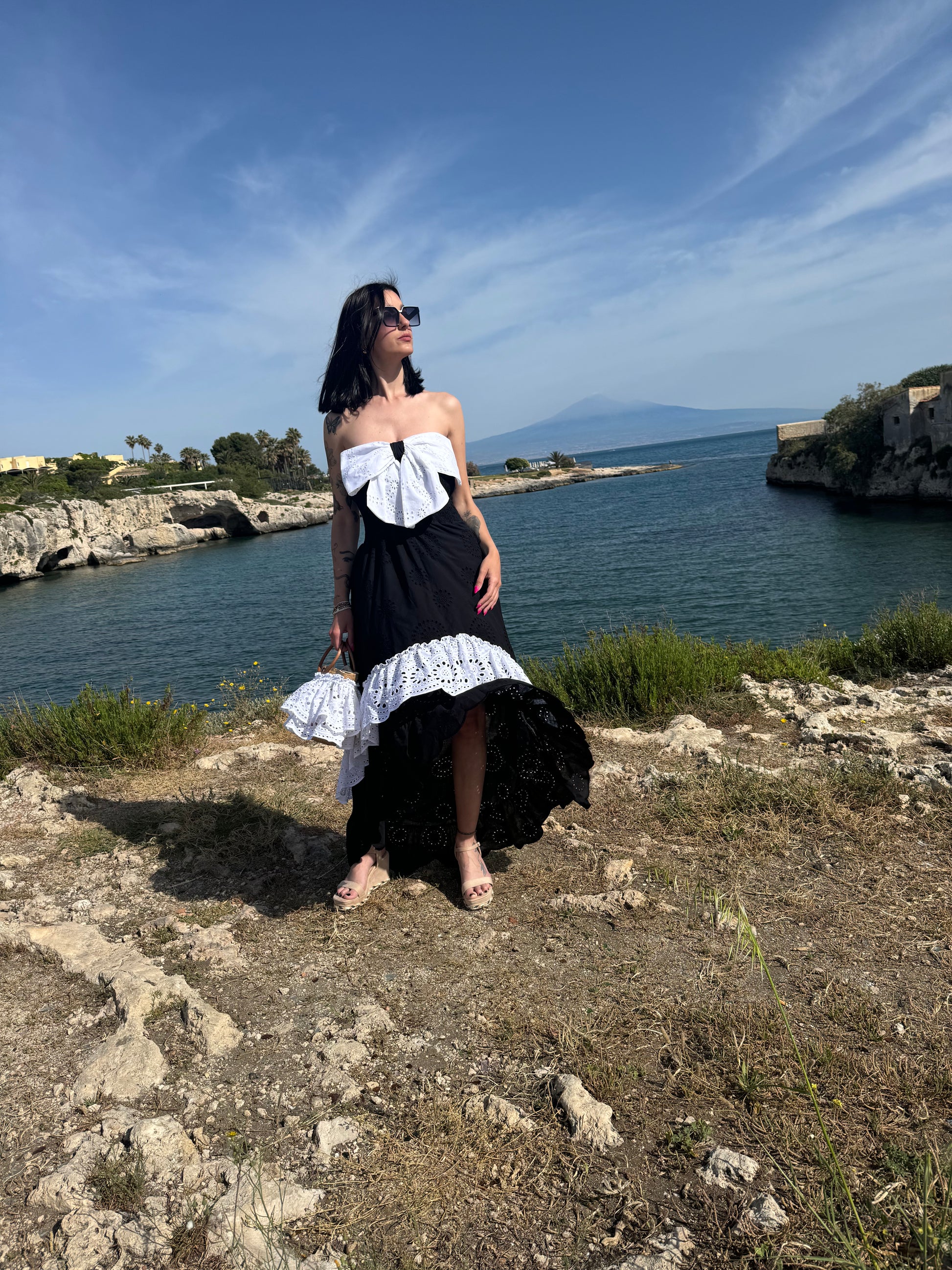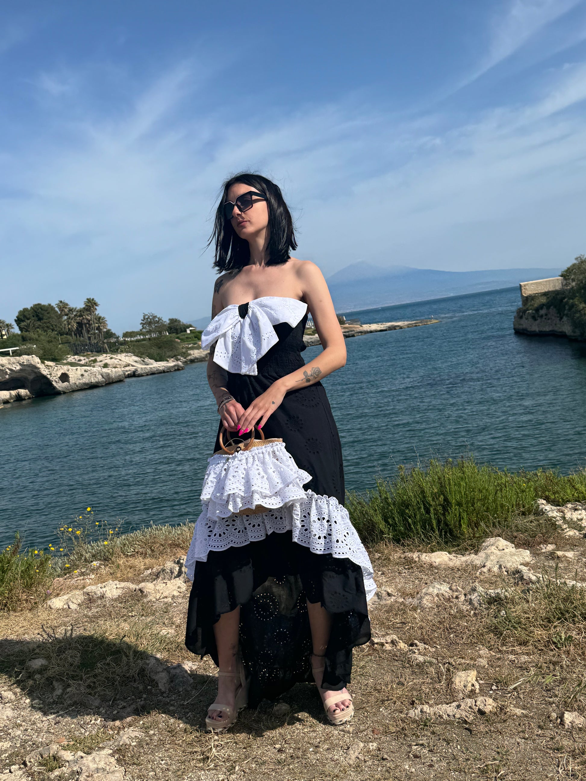 Abito in pizzo sangallo taglia 42/48 corto davanti lungo dietro