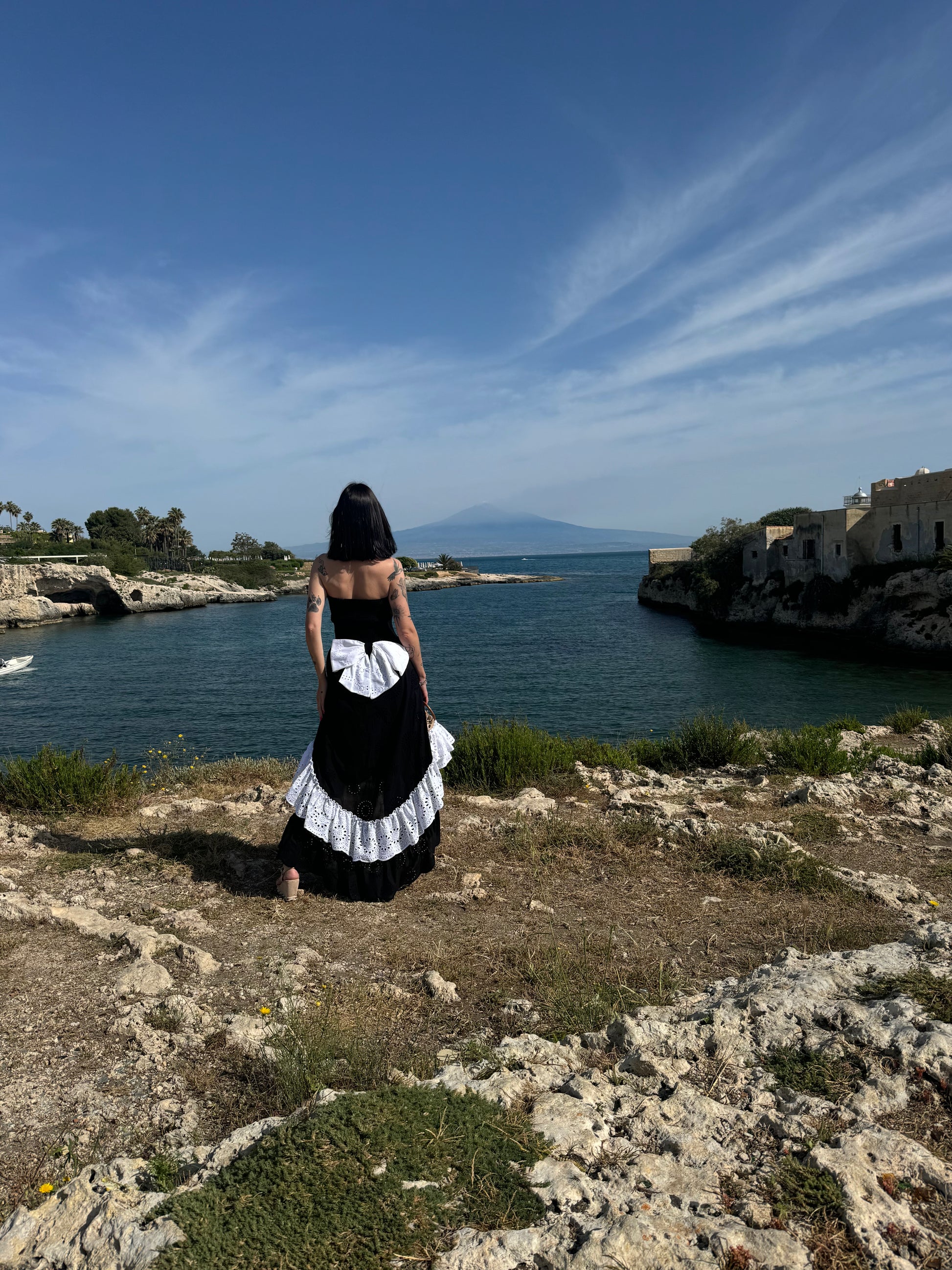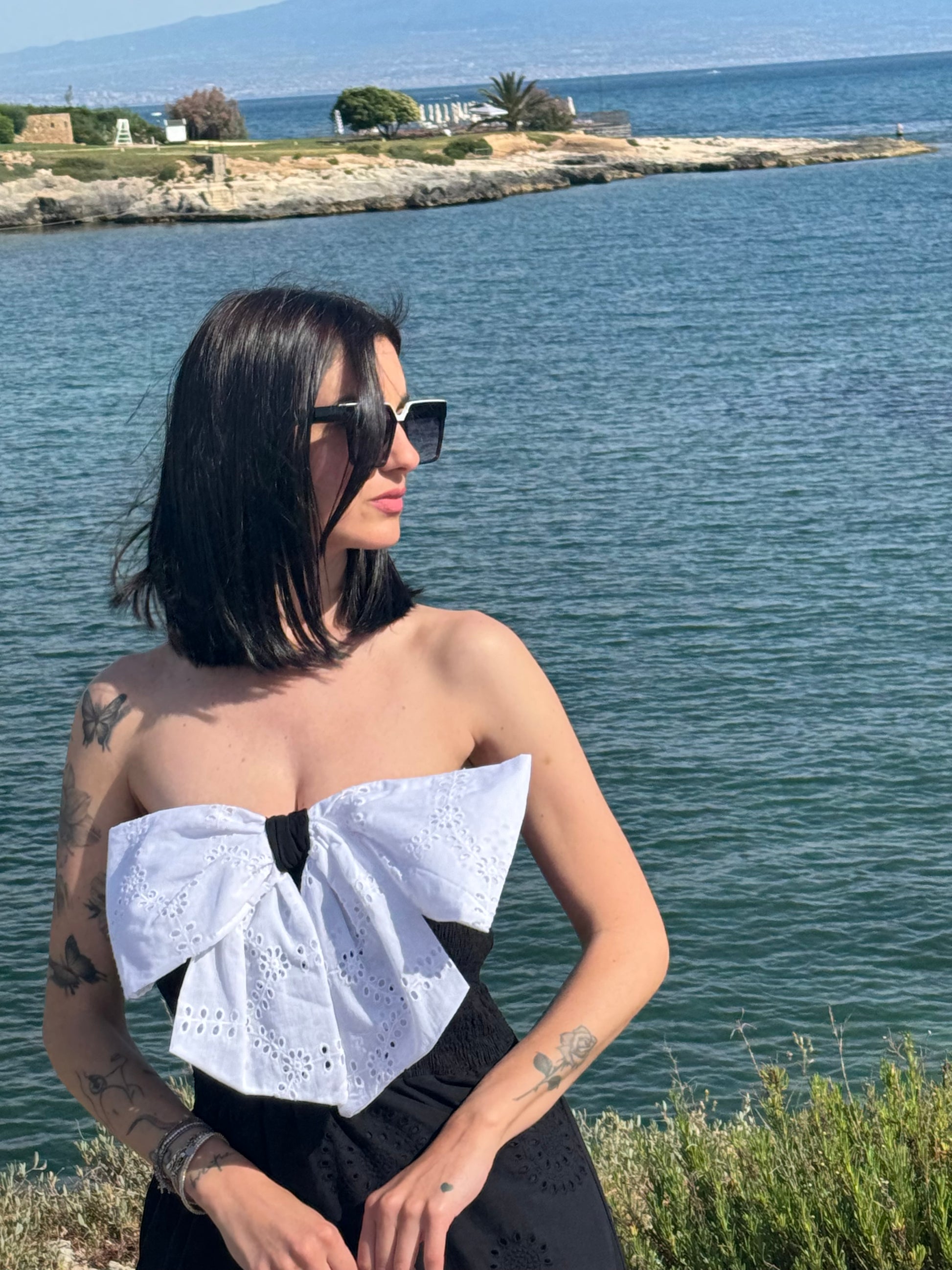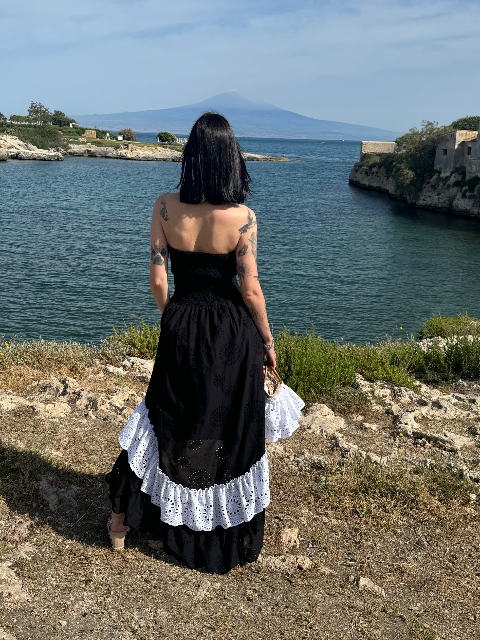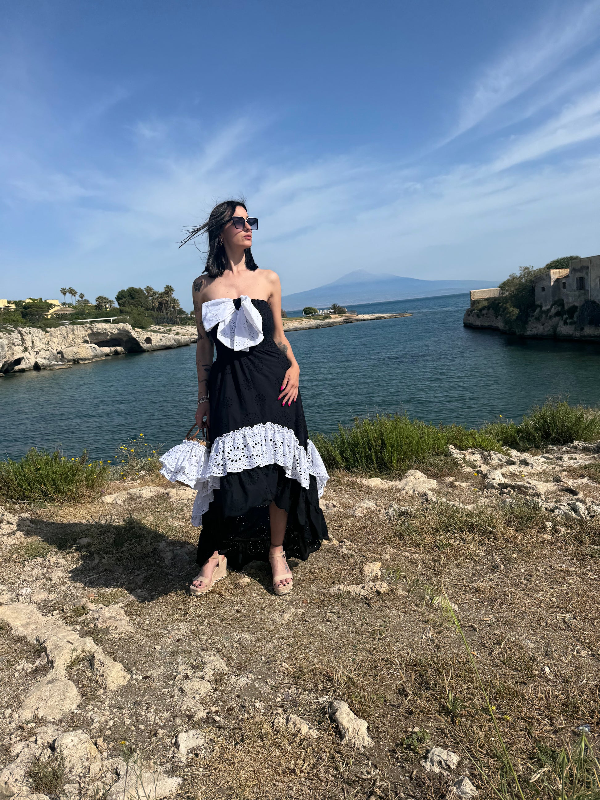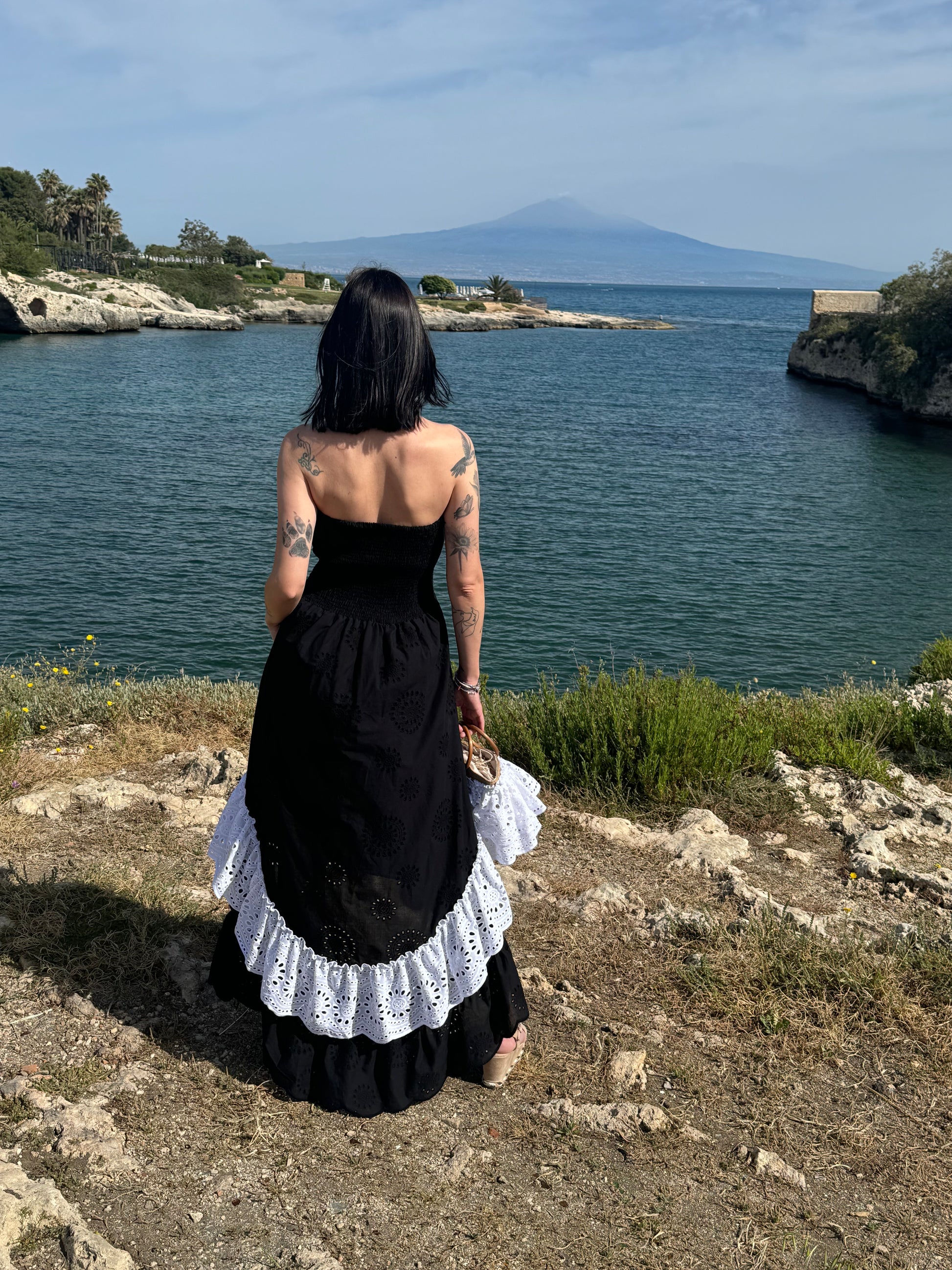 Abito in pizzo sangallo taglia 42/48 corto davanti lungo dietro
