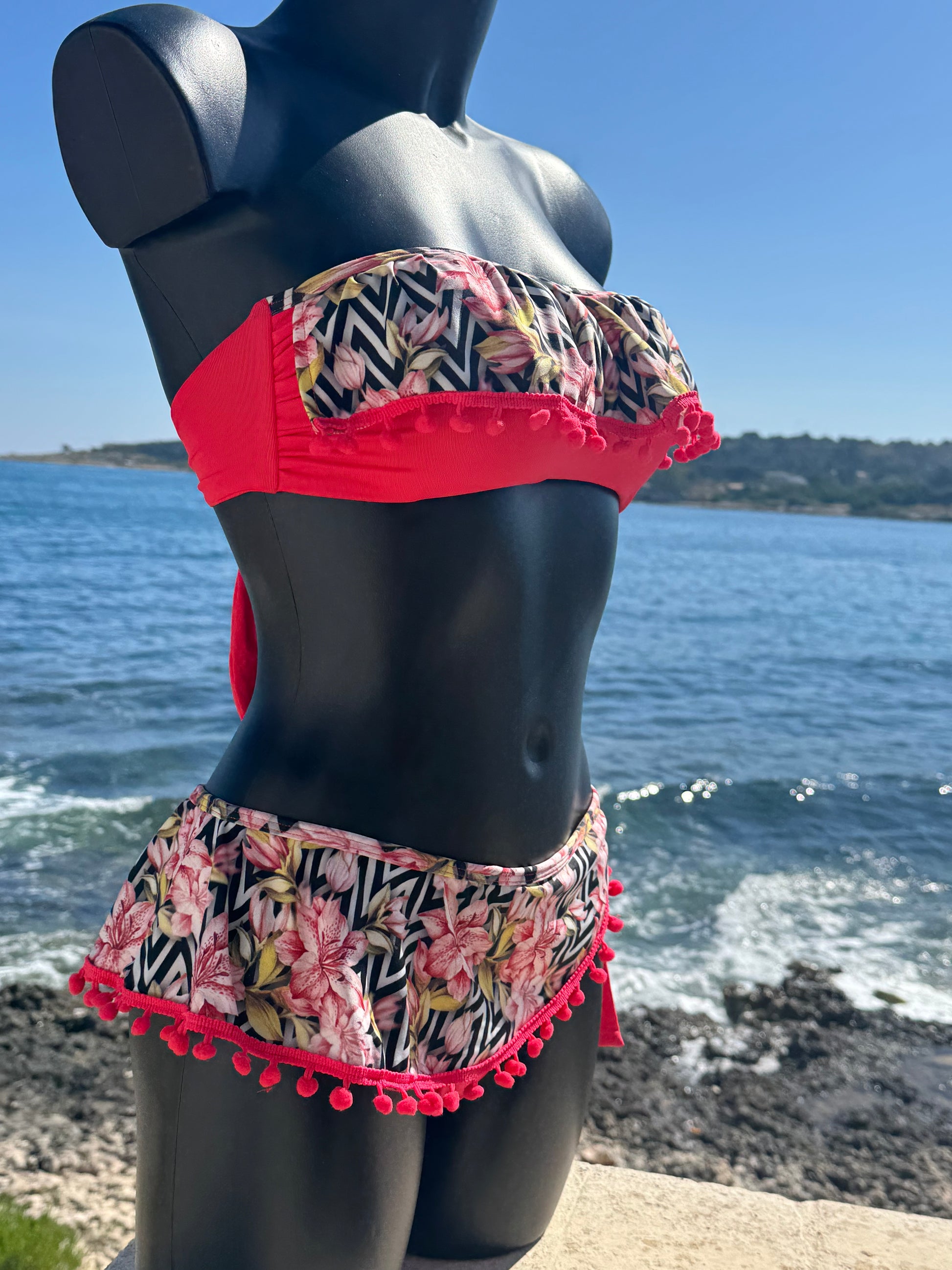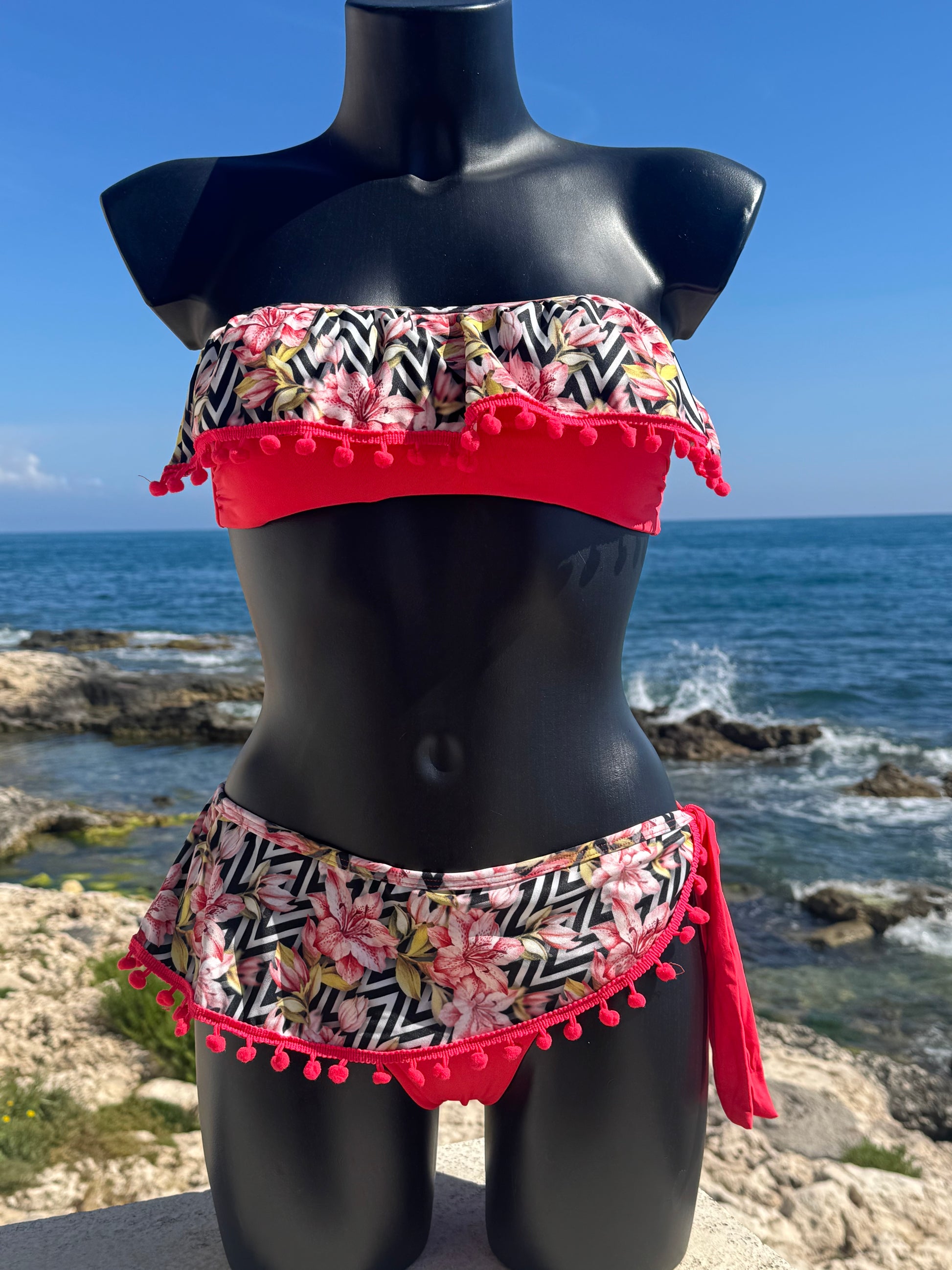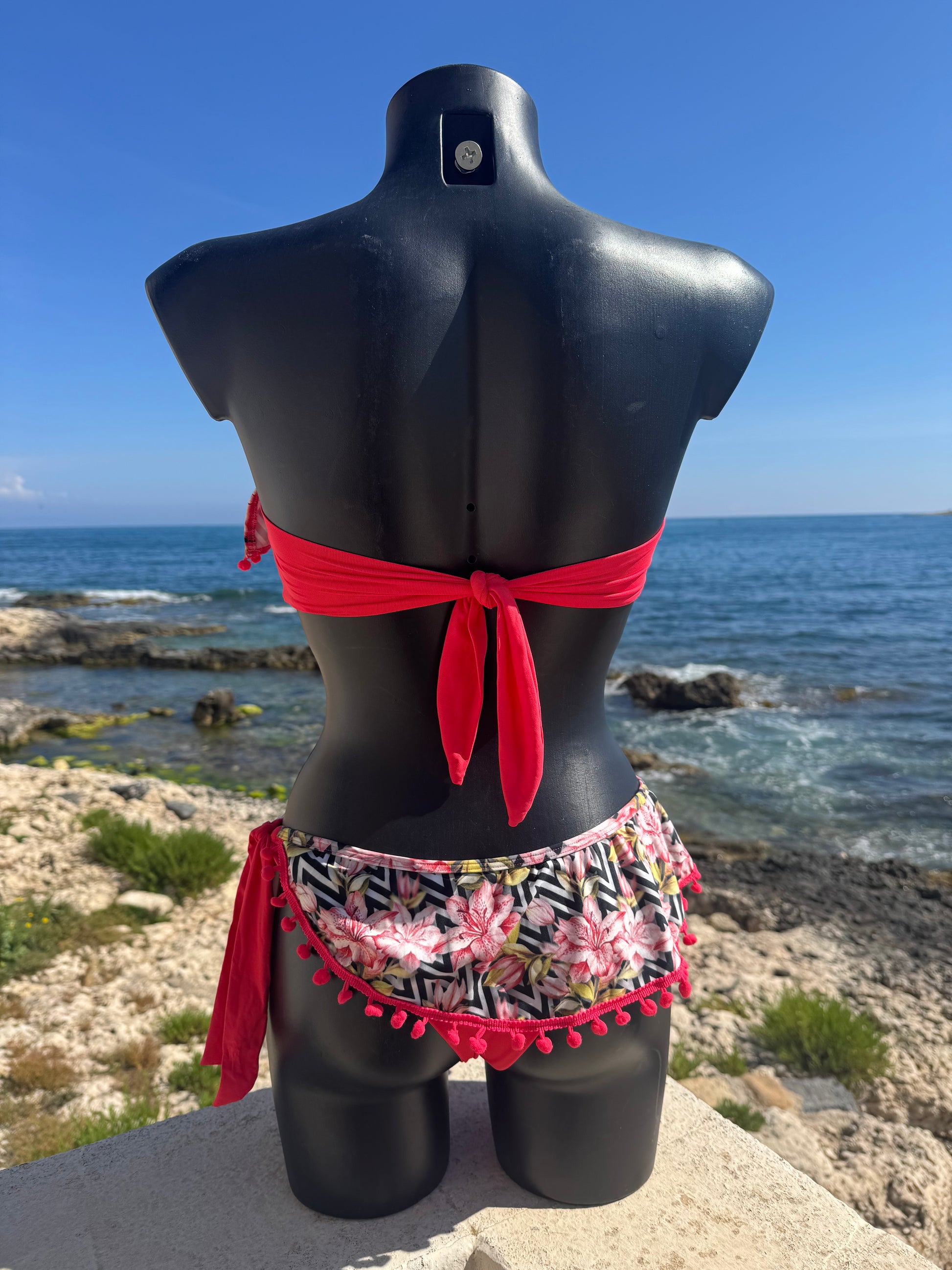 Fascia con coppe inbottite estraibili laccio X io collo slip con un laccio laterale e gonnellino